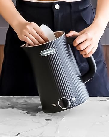 【Taste & Safety】Every surface of the electric kettle pot that contacts the water, including the inner, bottom, lid, and spout, is made of 304 stainless steel.This high-quality material is both safe and durable, ensuring long-term use.It also ensures that the water tastes pure, with no metallic or plastic aftertaste.The water kettle boiler features boil-dry,heat-insulated double-walled body protection ensuring safety.Its wide mouth design makes it easy to fill and clean.