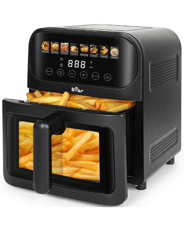 𝐀𝐝𝐣𝐮𝐬𝐭𝐚𝐛𝐥𝐞 𝐓𝐞𝐦𝐩&𝐓𝐢𝐦𝐞 𝐟𝐨𝐫 𝐅𝐚𝐬𝐭𝐞𝐫 𝐌𝐞𝐚𝐥: Bear air fryer with dual knobs that makes it very easy to set the time, temperature to air crisp. Dial in temperatures range 176-400°F, and cooking times 0-60 mins for crispy tasty meals. You can also manually set the cooking time and temperature for custom cooking needs