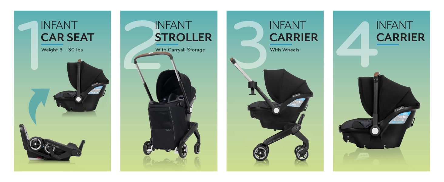 MAKE IT BABY’S FIRST CAR SEAT: Accommodates infants as small as 3 lb and as much as 30 lb, who measure from 15.7 in. to 32 in.; suitable with the Evenflo Gold Shyft Journey System