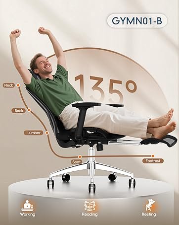 135° Recline Backrest: Equipped with 3 adjustable positions (90°-110°-135°), lock your reclining chair at a desired angle, offering a lounge-like experience for breaks or naps. Desk chair size : 20.6*19.1*42.7~48.8in(WDH), recommend for user of 5‘3‘’~6‘.