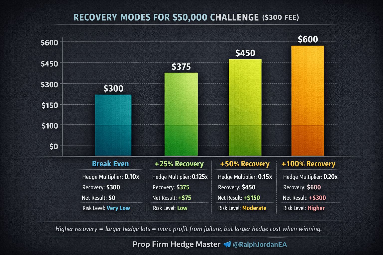 Once I go, I get a funded account and begin incomes payouts. Once I fail, the hedge recovers my charge. Typically I set restoration larger and really revenue from failing.