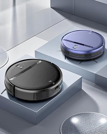 💨🐾[Brushless Suction Port Design] This robot vacuum is powered by a strong digital motor. The robot vacuum has strong suction power and a unique air inlet design, which will not be blocked by pet hair like other robot vacuum cleaners with roller brushes, Ideal for pet families.