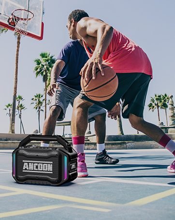 IPX6 WATERPROOF & DURABLE: The ANCOON Bluetooth speakers wireless. IPX6-level waterproof capabilities speaker, built solid and shock-resistant, suitable for use in environments such as garage, cookouts and pool party, construction sites, Gym, and outdoors.