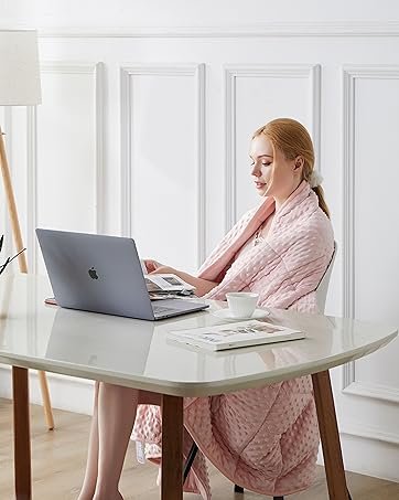 【COMFORTABLE PINK BLANKET】: The queen size weighted blanket for adult to hold weights in place for superior weight distribution and an exceptional touch experience.So this weighted blanket can evenly distribute the filler weight across your body.Comforts your body like a hug